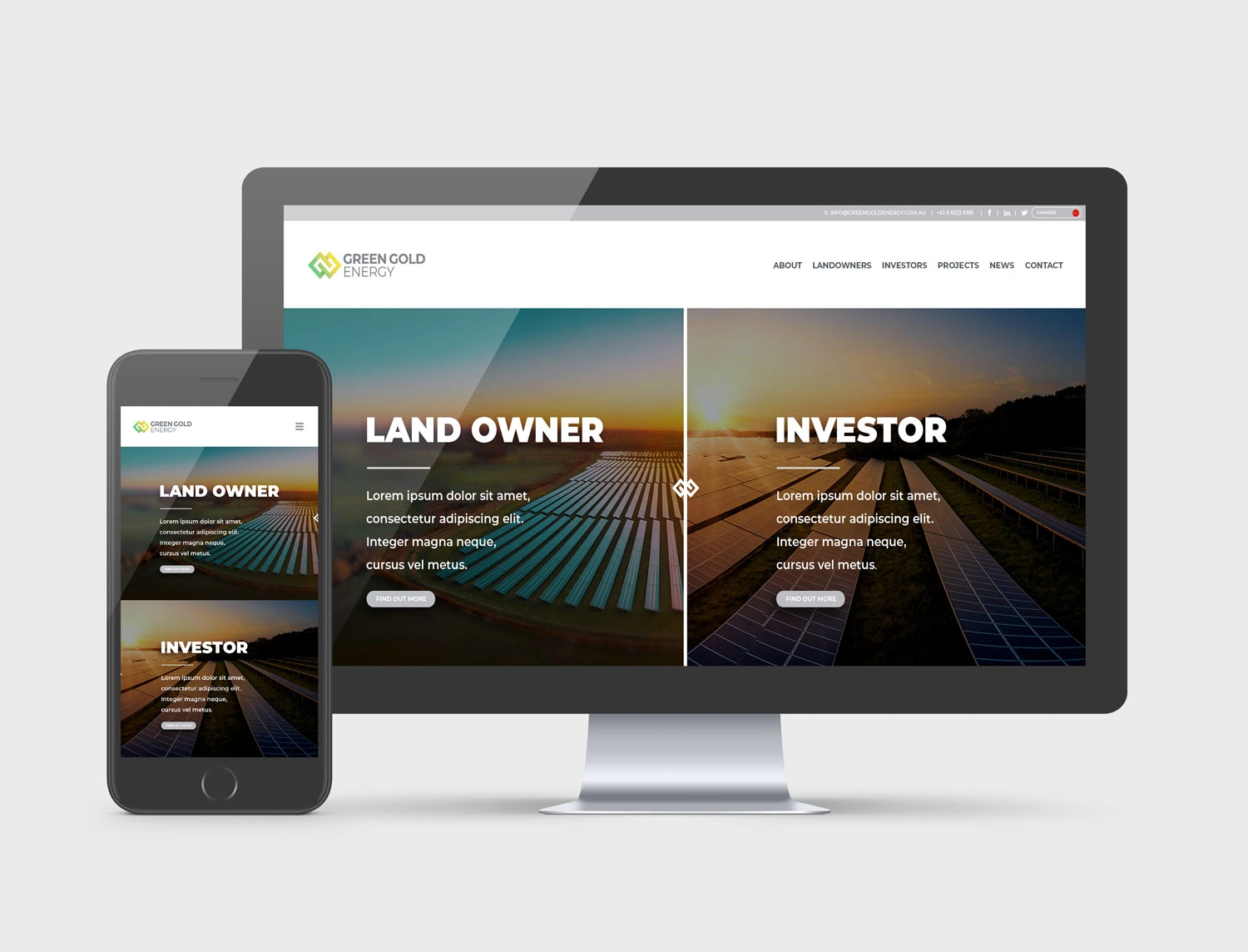 Green Gold Energy is the only South Australian company partnering with land-owners and investors to re-purpose land for large-scale Solar Farms. They required a new and more contemporary website targeting both investors and landowners, as well as an updated logo and new brochure.
