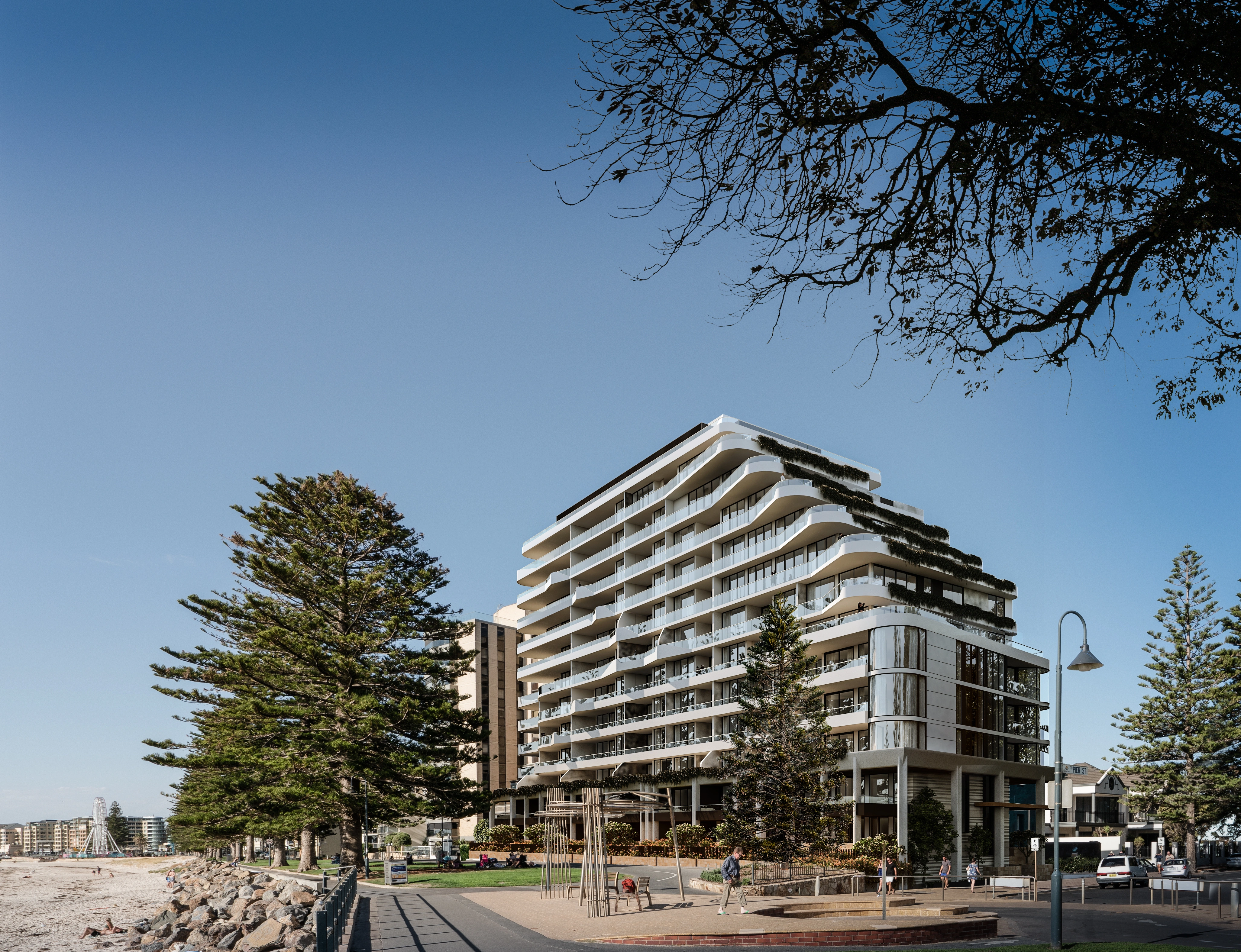 The new residential apartment building located at 21-25 South Esplanade, Glenelg will be scaled from 5 to 13 stories and bookend the southern Glenelg foreshore high-density residential precinct.