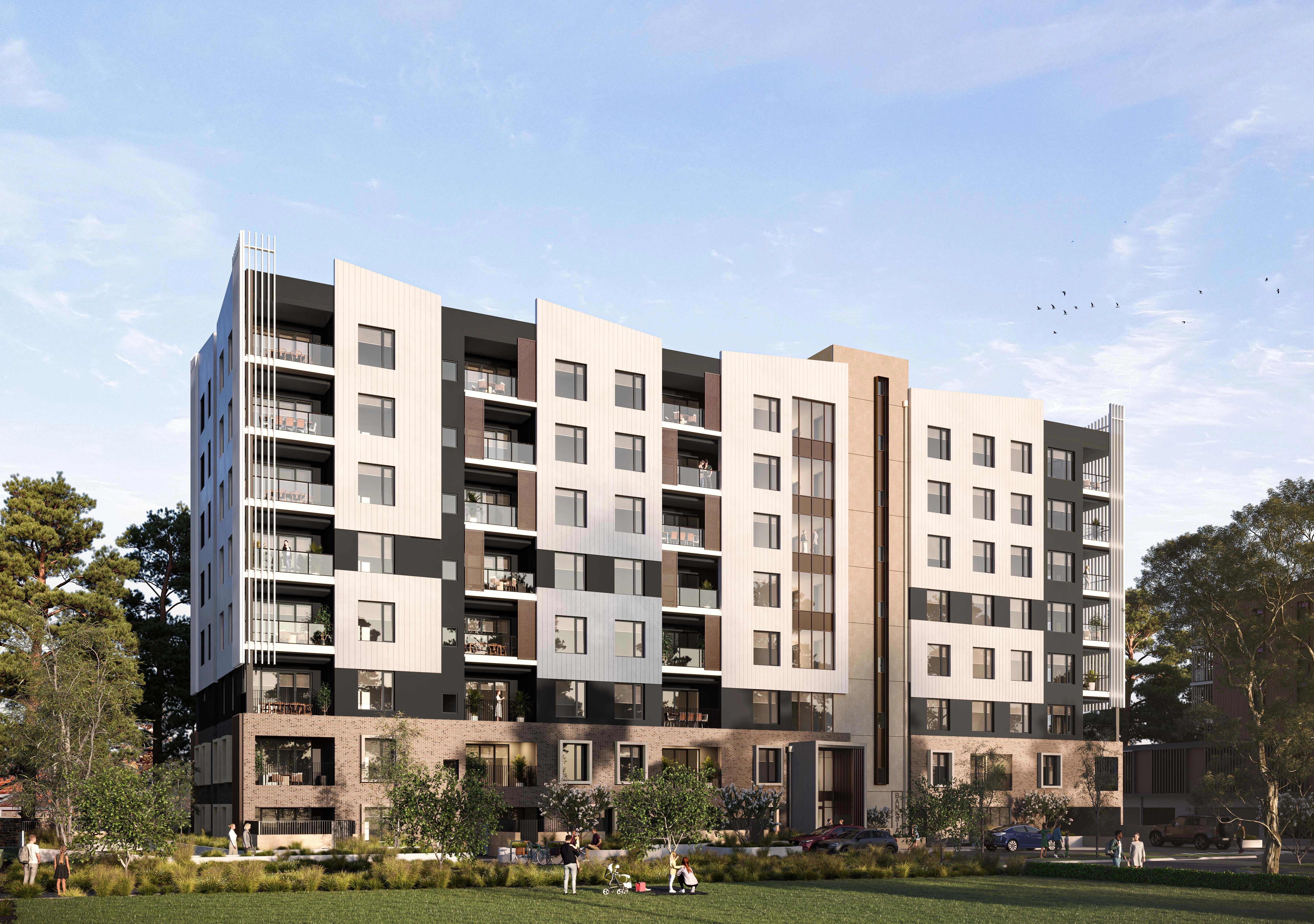 Banksia, a boutique eight-storey apartment building has been designed by leading South Australian architects Hames Sharley, and will incorporate 72 luxury one, two and three-bedroom apartments, overlooking Glenside’s Linear Reserve and community park, and with expansive views towards the Adelaide Hills.
