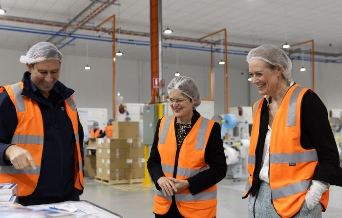 Pictured left to right: Mark Coupe – General Manager – Production, Detmold Medical, Middle: Governor of South Australia Frances Adamson, Right: Sascha Detmold Cox, Co-CEO.