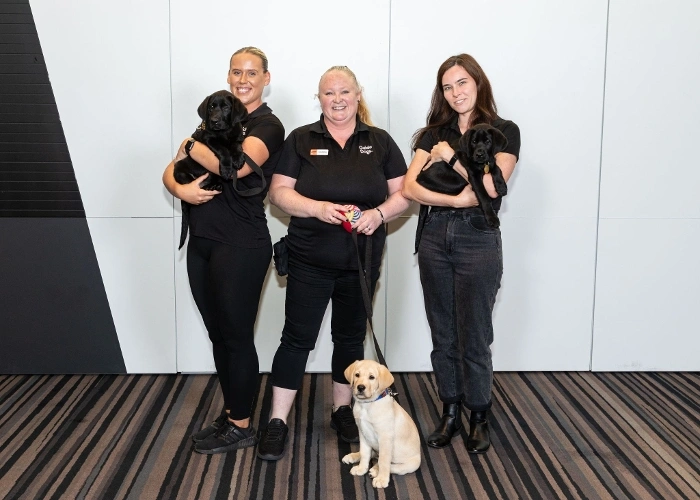 Tonight’s event will celebrate Darcy becoming a new Ambassadog; Gladdie, Grant, Jervis, Puzzle and Topaz becoming Guide Dogs; Fletch and Flint moving to Queensland to begin their working lives; and Kira’s matching journey, as they make a difference to the community and the people they will be supporting.