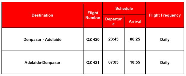 Indonesia AirAsia Flight Schedule from Bali to Adelaide from 22 March, 2026